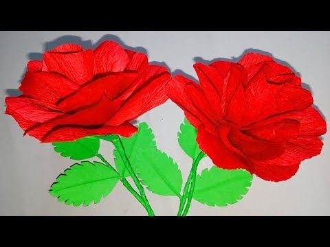 How To Make Rose Paper Flower From Crepe Paper | Diy Rose Crepe Paper Fl...